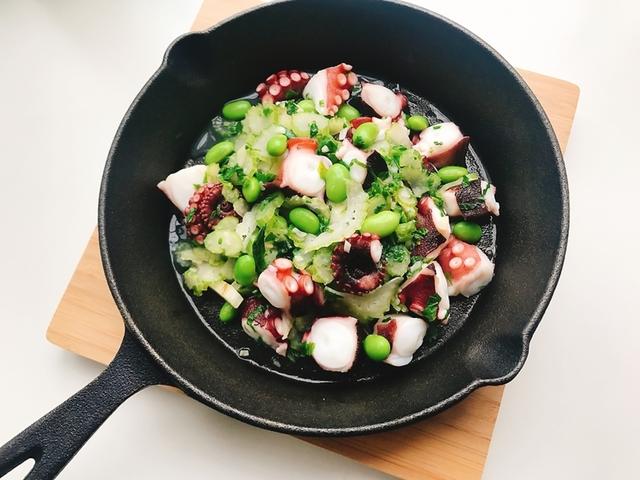 旬の食材で彩り豊か!たこと枝豆のオリーブオイル炒め