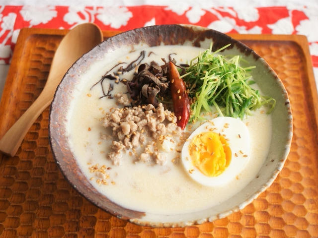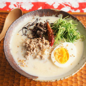 ひき肉で旨味やコクをプラス!とんこつラーメン風ミルク雑炊