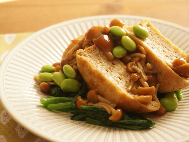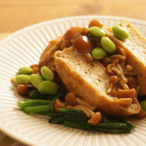 だし汁が染み込んだ♪がんもどきのなめこあんかけ