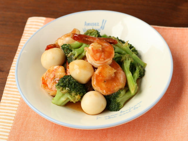 オイスターソースの風味が食欲をそそる!えびとブロッコリーの炒め物