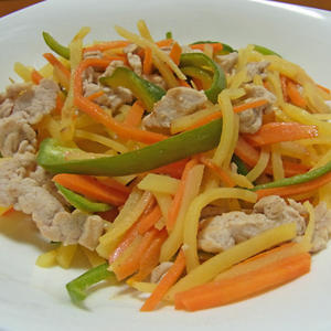 色鮮やか!豚肉とじゃがいもの酢炒め