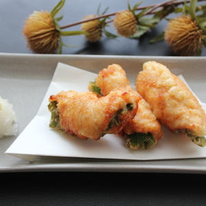 メインはしその風味が爽やかな鶏天です。ささみは低脂質・高たんぱくなので体重が気になる方のたんぱく質源に適した食材です。水菜の炒め物や海藻たっぷりのお味噌汁を添える事でビタミン・ミネラルもしっかりと摂れる献立になりますよ。