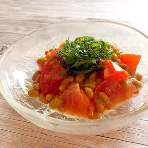 鶏肉の旨味やクコの実で、あっさりとしながらも深みのある味わいの塩味の雑炊です。 トマトと納豆のぽん酢和え、とろろ昆布のすまし汁と合わせて食欲のない日にも食べやすいメニューを組み合わせました。フルーツヨーグルトと合わせてどうぞ。
