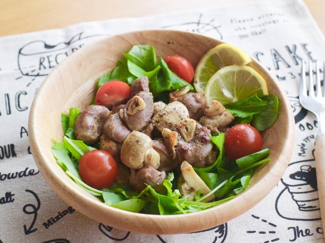 食感を楽しむ!砂肝とマッシュルームのレモンソテー