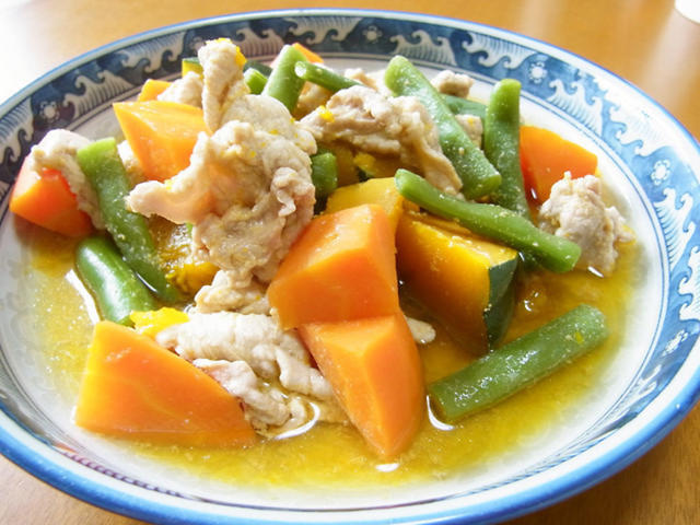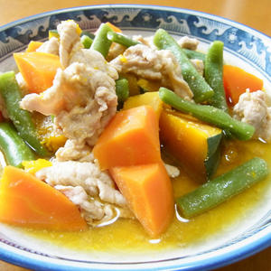 じんわり染みておいしく!豚肉とかぼちゃの煮物