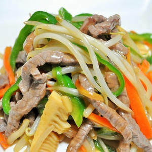 細切り野菜ともやしで食感良く!もやしたっぷりチンジャオロース