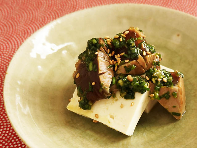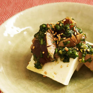 乗せるだけ!かつおのニラ醤油和えのっけ豆腐