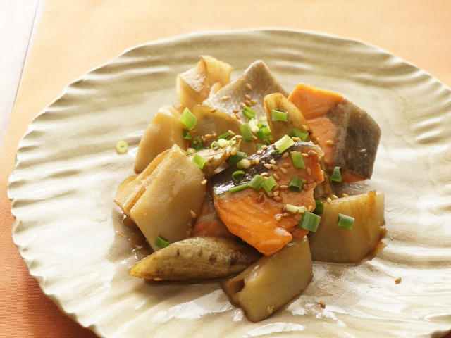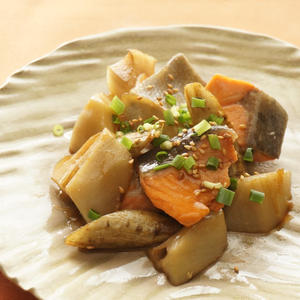 旬を味わう、秋鮭と根菜の照り煮
