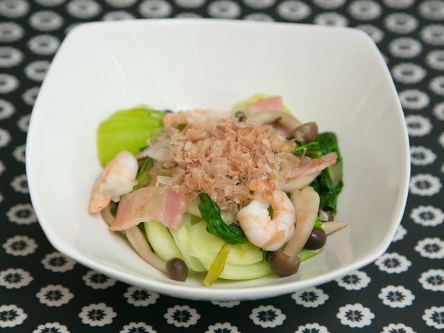 和風味にチェンジ!チンゲンサイとベーコンの和風炒め