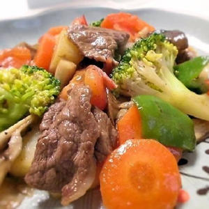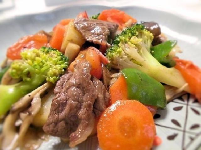 脂肪分が少ない牛もも肉を使った、野菜たっぷりの炒め物です。彩り豊かな野菜を使う事で代謝をサポートするビタミン・ミネラルをしっかりと摂れる一品になります。また、旨味成分が豊富なトマトやきのこ類を取り入れる事で、シンプルな味付けでも満足感のある味に仕上がりますよ。