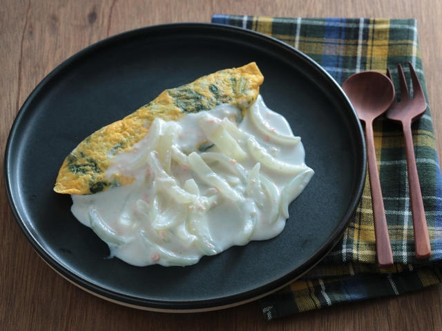 とろとろホワイトソースが美味しい!明太クリームオムレツ