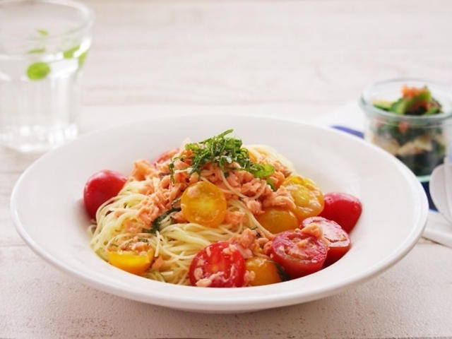 鮭とミニトマトの冷たいパスタ献立