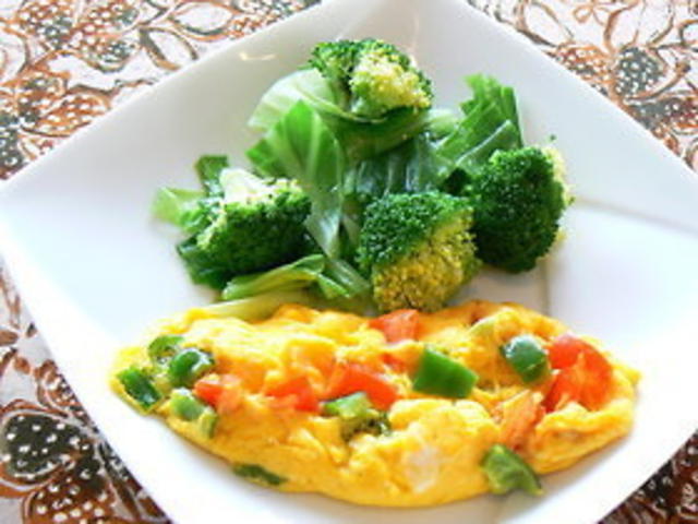 ピーマンとパプリカのカラフルオムレツ献立