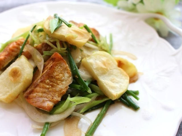 カレー風味で食欲アップ!焼き鮭の香味和え