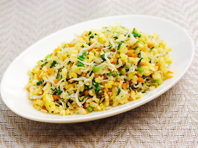 カルシウムたっぷり♪じゃこと春菊の香味チャーハン