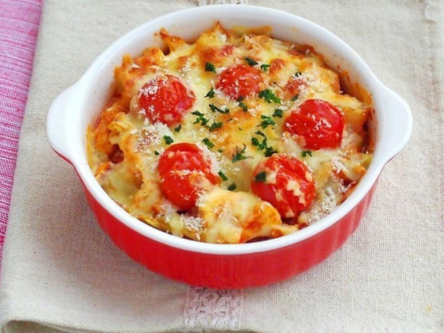 野菜たっぷり♪トマトとキャベツのおかずグラタン
