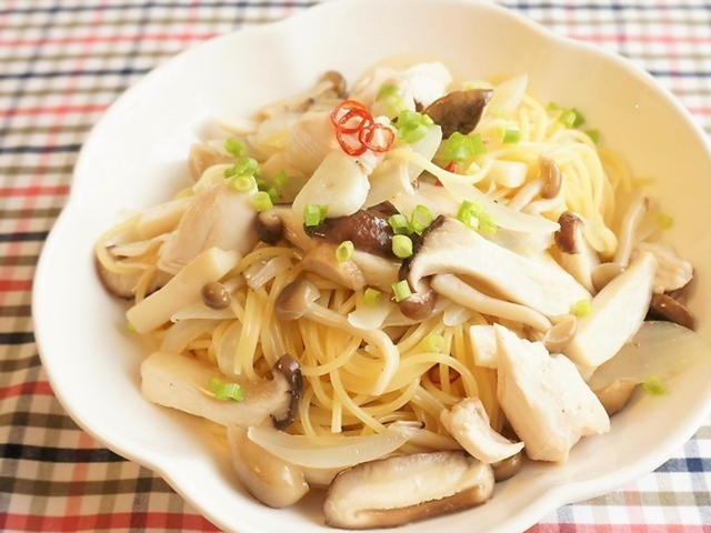 簡単なのに満腹♪しっとりささみとトリプルきのこのパスタ