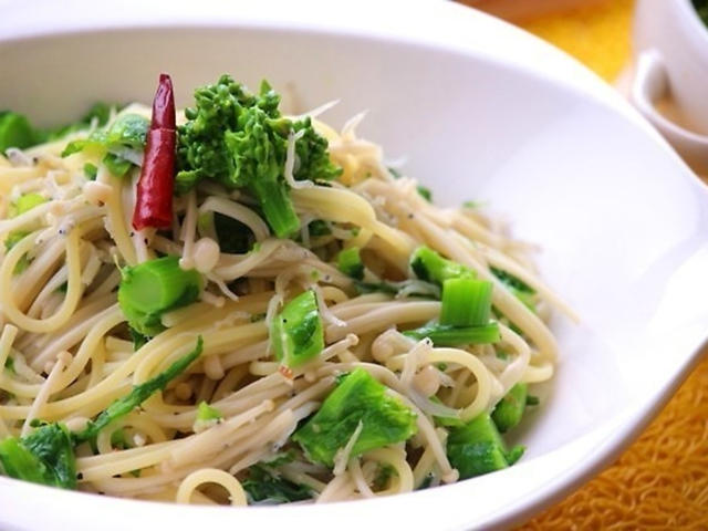 ほろ苦い春の香り♪菜の花としらすのヘルシーペペロンチーノ