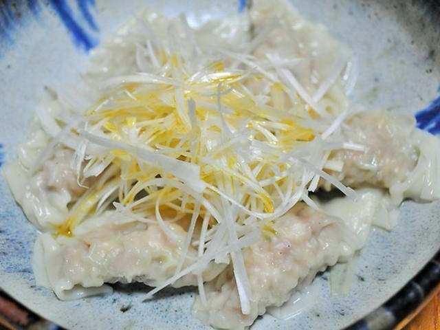 お酒のおつまみにも♪ネギたっぷりワンタン