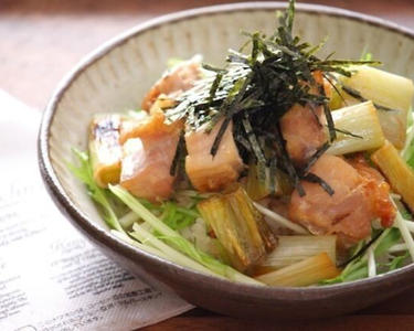 市販のねぎま焼きとりに更にねぎや水菜を加えて栄養アップしたものに!電子レンジで調理出来るのでとっても簡単♪