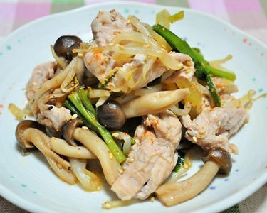 一度を火を止めてから2の水溶き片栗粉を加え、よく混ぜます。