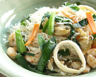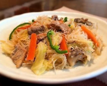ビーフンは炒める間にやわらかくなるので、水でもどす際には固めにしておくのがポイントです。アレンジでキャベツを加えると、よりボリュームアップします。