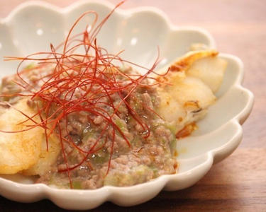 低脂肪なタラと高脂肪な豚ひき肉を組み合わせることによってバランスの整ったメインに。旨みの相性も抜群です。