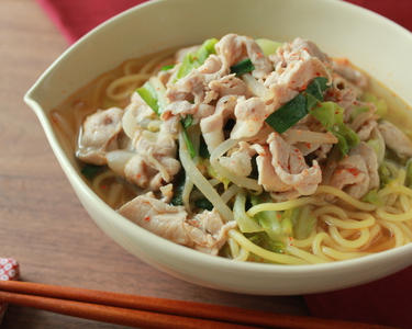 炭水化物やたんぱく質、野菜などが入った具沢山のキムチラーメンです。発酵食品であるキムチを使うため、腸内環境の改善が期待できます。