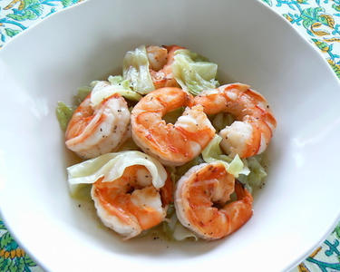 海老には肌の健康を保つビタミンB2が豊富!ビタミンCたっぷりのキャベツと組み合わせて、肌荒れ予防にピッタリの一品に!