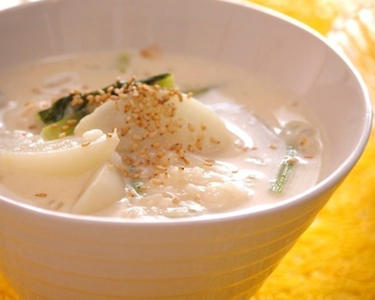 消化を助けてくれるカブと優しくたんぱく質やカルシウムを補給してくれる牛乳を使った雑炊。食べ過ぎてしまった次の日にもおすすめな身体に優しい1品です。