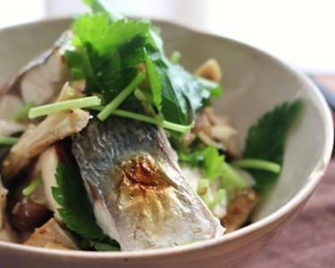 秋刀魚と椎茸とたたきトマト