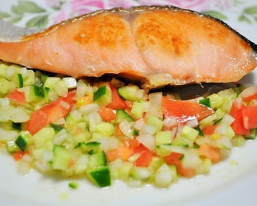 トマト、玉葱、きゅうりを小さめのさいの目切りにする。