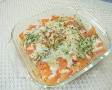 鮭とマッシュポテトとトマトのオーブン焼き