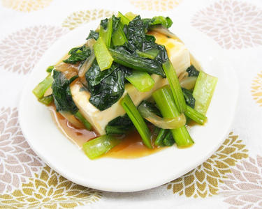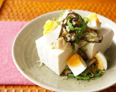なめこのとろみがあんかけ風のポイントです。さっぱり味で具だくさんの温奴です。