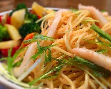 定番スパゲティにイカが加わることで色々な食感が楽しめます。