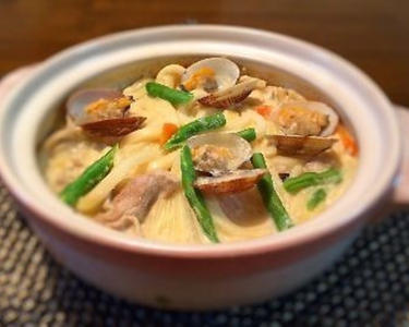 大豆に含まれるサポニンには、中性脂肪を抑える働きがあります。今回は大豆からできた豆乳を使用することでカロリーは低く、栄養価の高い煮込みうどんに仕上げました。