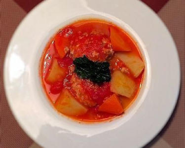 大きめトマト丸ごと1個使った煮込みハンバーグです。