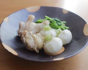 人参、蓮根は皮をむいて半月切りに、さつま芋はよく洗って、輪切りにし、だし汁と一緒に柔らかくなるまで煮込む。