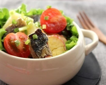 アジは食べやすい大きさに切り、塩を振ってグリルで焼き、じゃがいも、さつまいも、ミニトマトと一緒に★の材料で和える。