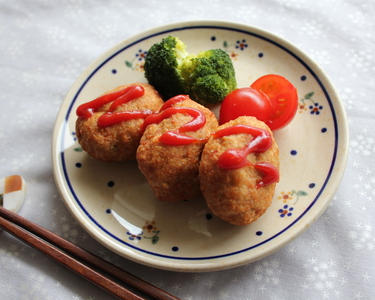 フライパンに油を熱し、2をスプーンですくってフライパンに落として揚げ焼きにする。