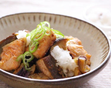 鮭の色素である「アスタキサンチン」は強い抗酸化作用を持ち、血糖値を下げる効果も期待出来ます。先に小麦粉を振って焼く事で、パサつかずジューシーに仕上がります。ナスは油を吸収しやすいですが、蒸し焼きにする事で、使用する油が減りカロリーカットもできます。