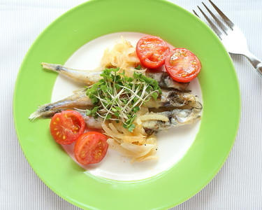 茄子の皮の紫色は「ナスニン」と呼ばれるポリフェノールの一種で、アントシアン系の色素です。ポリフェノールは強い抗酸化作用を持っているので、活性酸素を抑えコレステロール値を下げる働きがあることが分かってきました。紫蘇を加え、清涼感のあるメニューに仕上げました。