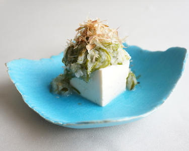豆腐は時間がたつと水分がでてくるので、おろしめかぶは食べる直前にのせると良いでしょう。