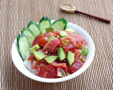 ハワイの魚料理「ポキ」を丼に合う味付けにアレンジしました。魚の脂に含まれるDHA、EPAには血液をサラサラにしたり脳の活性を高める効果があると言われています。