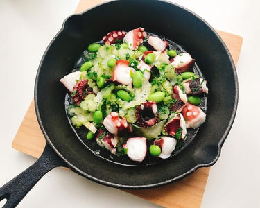 たこと枝豆のオリーブオイル炒め