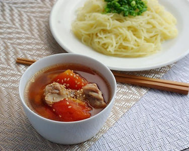 つけ汁はゴマの風味を生かすことで美味しく仕上がります。またゴマに含まれるセサミンには強い抗酸化作用があり、コレステロール低下や生活習慣病予防に効果が期待できます。女性ホルモン生成に関わるビタミンEも豊富に含まれていますので、更年期障害の予防・改善にも効果的ですよ。