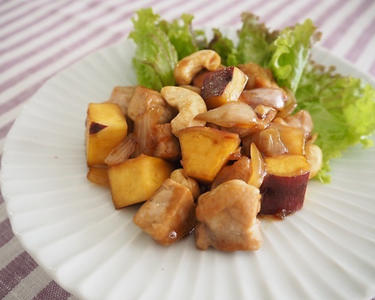 フライパンにサラダ油を熱し、玉ねぎ、さつまいも、豚もも肉の順に炒める。