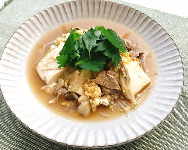秋の味覚、きのこをたっぷりと使用して旨味たっぷりの一品です。また、豆腐は消化が良く、イソフラボンも豊富に含まれているので、女性の美容と健康に効果が期待できます。
