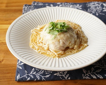 鶏ひき肉と豆腐の巾着えのきあんかけ