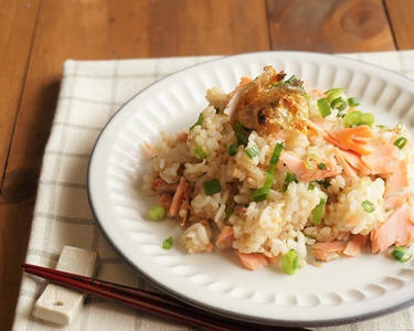 ②にほぐした鮭、小口切りにした小葱を混ぜる。